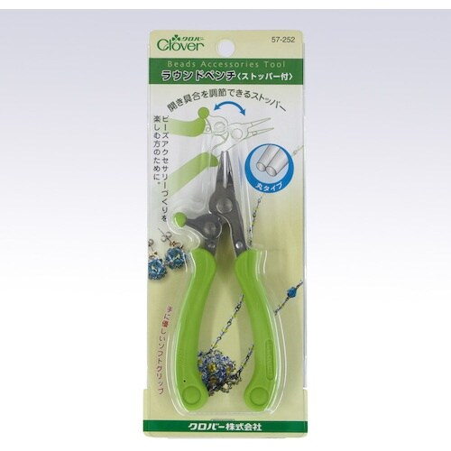 ピンやワイヤーを丸めるときに便利な丸形のペンチです。開き具合をストッパーで設定すると、繊細な作業がらくにできます。最大開き幅:約8.5mmです。ビーズアクセサリー作りに。 |