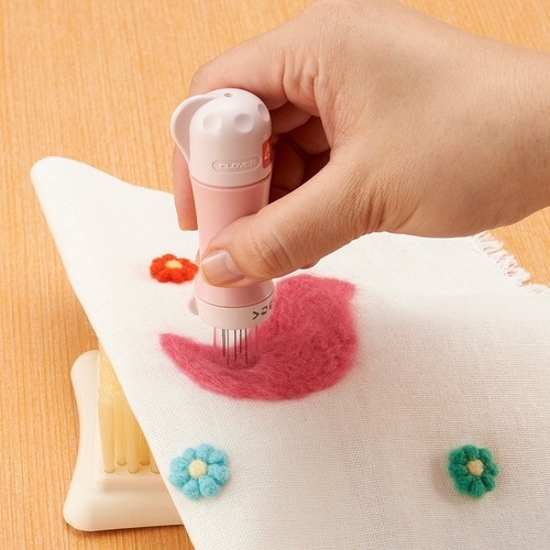 糸も接着剤も使わずに、軽くトントン突くだけでアップリケができます。フェルトパンチャーは使いやすさや安全性にこだわった、羊毛フェルト手芸の専用ツールです。 |
