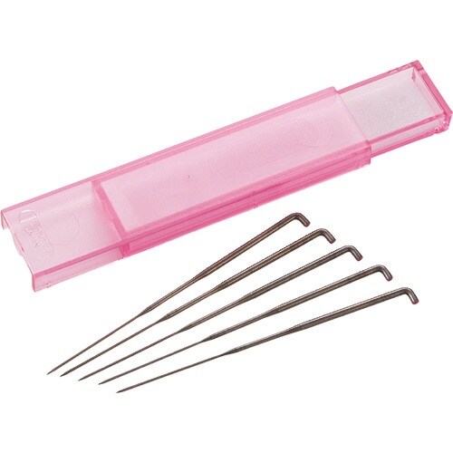 フェルトパンチャー用替針です。太さがあり、目の粗い生地へもモチーフの繊維をしっかり絡められます。替針を上手に使い分けると作業性がアップします。ニット地などの目の粗い生地への羊毛刺しゅう、アップリケに。 |