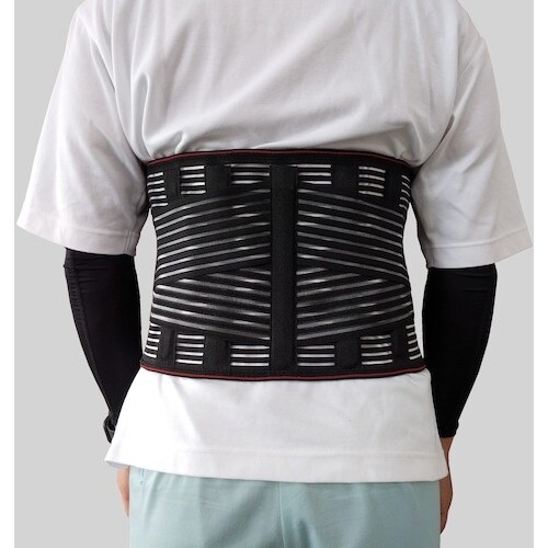 W補助ベルトで腰部をサポートするベルトです。PPボーンも5本使用し、腰と背中をしっかりサポートします。伸縮性・通気性に優れたメッシュ生地を使用しています。