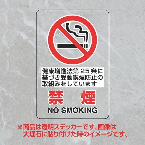 表示内容:禁煙 NO SMOKING 健康増進法第25条に基づき受動喫煙防止の取組みをしています | 取付仕様:粘着シール | 縦(mm):150 |…