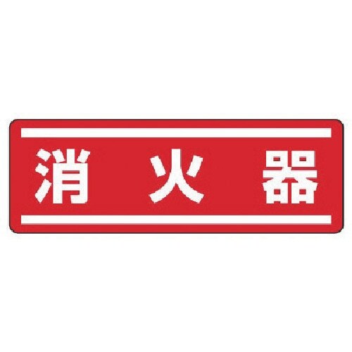 表示内容:消火器 | 縦(mm):120 | 横(mm):360 | 摘要:粘着シール | その他仕様:5枚1組 | 材質・仕上げ:PVCステッカー …