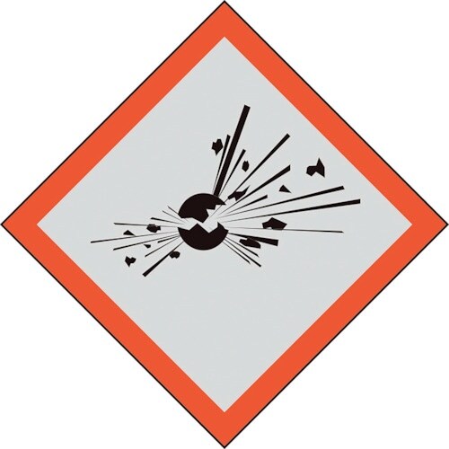 表示内容:爆弾の爆発 | 取付仕様:粘着シール | 縦(mm):40 | 横(mm):40 | サイズ:小 | 摘要:爆発物、自己反応性化学品、有機過…