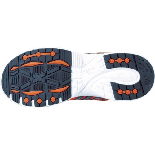 耐油性ゴム底です。踵部分に衝撃吸収用のエアクッションを採用しています。ひもポケを採用し靴ひもの引っ掛かりや緩みを防止します。一般作業。