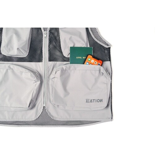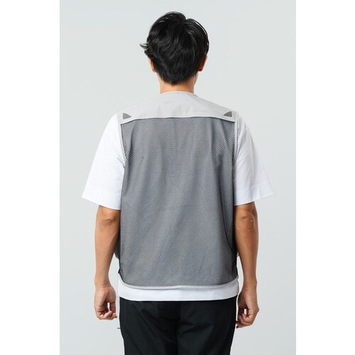 マチ付きの大型ポケットを装備。軽量ストレッチ素材を使用したメッシュベストです。作業に。