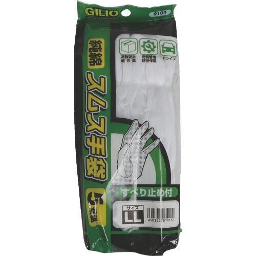 カジメイク カジメイク 9104 純綿スムス手袋 スベリ止め付 5双組 白 LL A00X-0481
