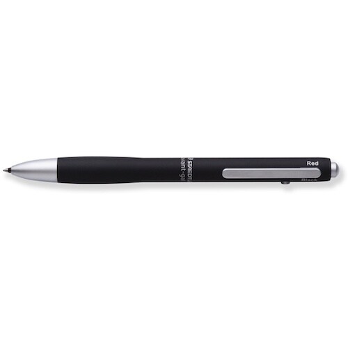18gの軽量アルミボディにシックなカラーをまとい、黒/赤/青ボールペンと0.5mmのシャープペンシルを内蔵した4機能ペンです。 |