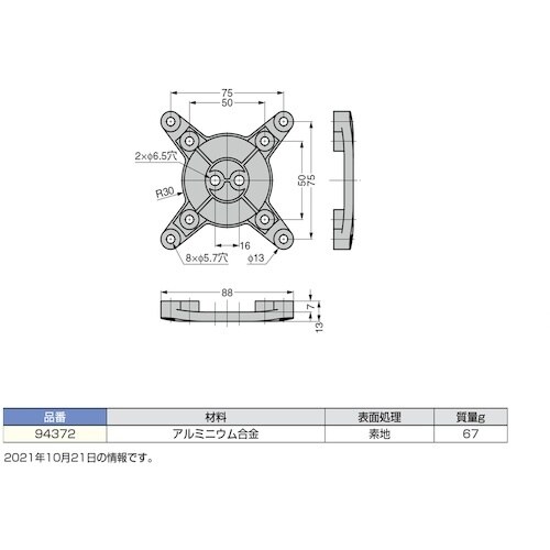 モニター側の取付穴はVESA規格に適合した穴ピッチ(50×50、75×75mm)です。 |