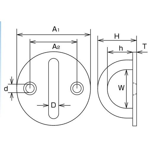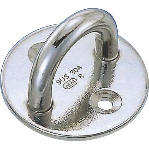 ステンレス製で錆びにくく、耐久性に優れます。座部分が円形です。壁面・床面・柱などに設置し、チェーン・ワイヤー・ロープなどの端末金具として。