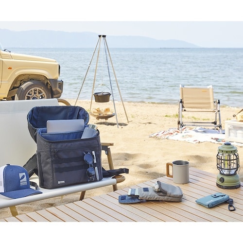 中身が取り出しやすく、自立するバックパック。生地には、海岸から50km以内の内陸部に廃棄され、最終的に海に流出する可能性の高い「オーシャンバウンドプラスチック」から作られた素材を使用しています。 |