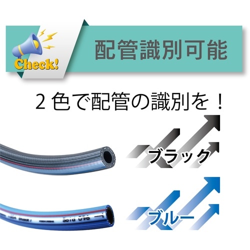 柔軟で肉厚なのでホースバンドでの気密性が高く、エア漏れを防ぎます。【柔軟性】柔軟で曲げやすく、折れにくいので狭い場所での配管、工場内の固定配管、設備のエアー配管に最適なエアーホースです。