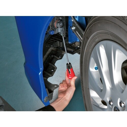 先端専用設計で樹脂ガイド部を傷つけにくいです。先端φ6で軸のガタつきを抑え回し良いです。中間φ5でサービスホールが狭い車にも対応します。狭所で使用できるショートタイプです。 |