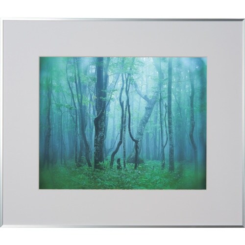 作品を奥深い印象に演出するアルミ額縁です。写真展では定番な作品額で、フォーマルな場所にも最適です。シンプルなフレームと厚手Vカット台紙が作品を際立たせ、ゆったりと作品を鑑賞できます。 |