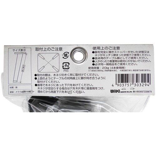 和気産業 WAKI YT角型脚 黒 AK−047 270 2本入り A00X-4793