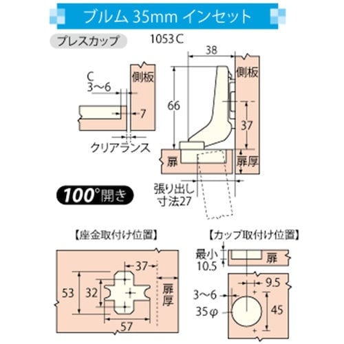 アイワ金属 アイワ金属 インセット C付 AP−1053Cブルムスライド丁番35mm A00X-5483