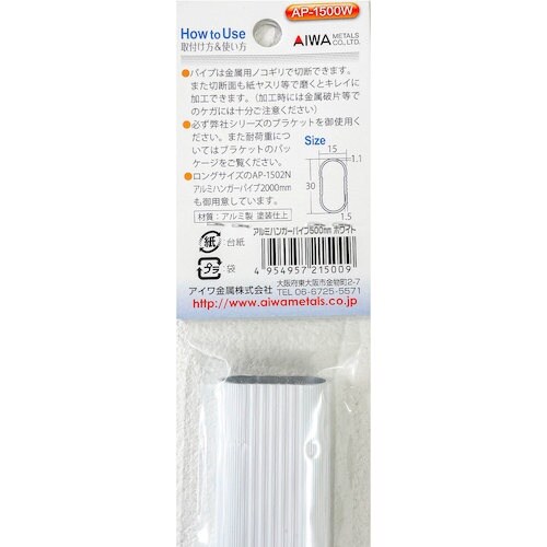 アイワ金属 アイワ金属 アルミハンガーパイプ500mm ホワイト A00X-5502
