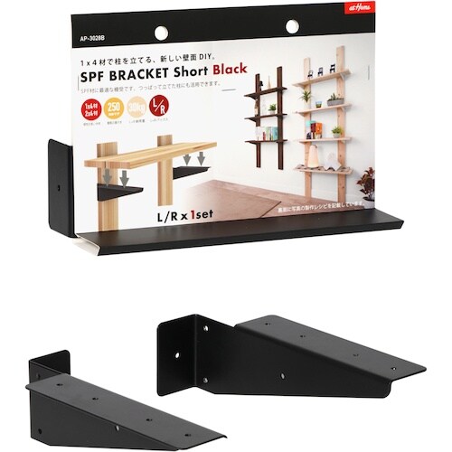 奥行き250mmまで対応のSPF材に適した棚受けです。柱 に棚を取り付けるパーツです。 |