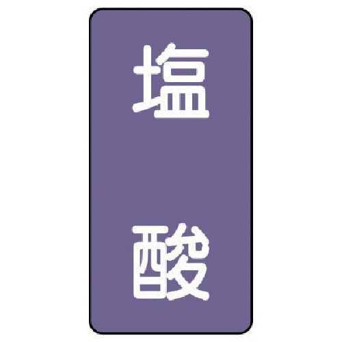 表示内容:塩酸 | 縦(mm):150 | 横(mm):80 | 厚さ(mm):0.12 | 摘要:粘着シール | 地色:灰紫(マンセル値2.5P 5…
