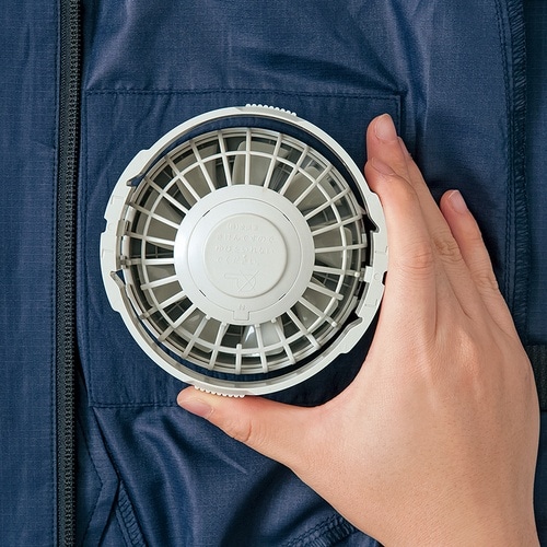 サイドファン仕様の空調服です。4Lサイズ以上はロングケーブルが必要となります。ファン・バッテリーは別売りです。