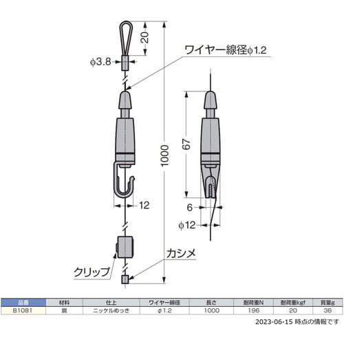 | 注意事項 | ※ワイヤーは、ほつれ防止のため終端処理をしています。ワイヤーを切って使用する場合は、終端をカシメてください。 |