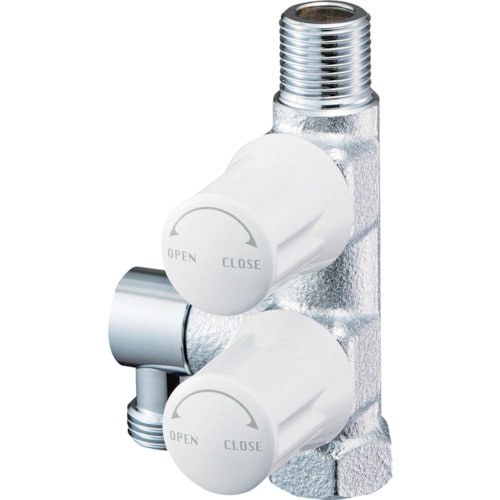 エルボが360°回転します。ハンドル操作でそれぞれ吐水・止水ができます。 |
