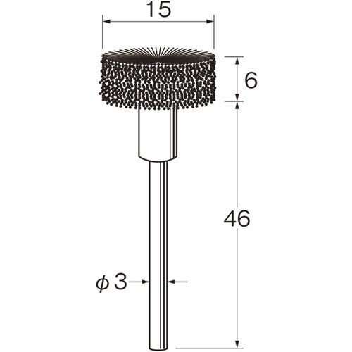 毛材:ステンレス | 外径(mm):15 | 毛丈(mm):6 | 軸径(mm):3 | 最高使用回転数(rpm):10000 | 単位:1袋(3本)