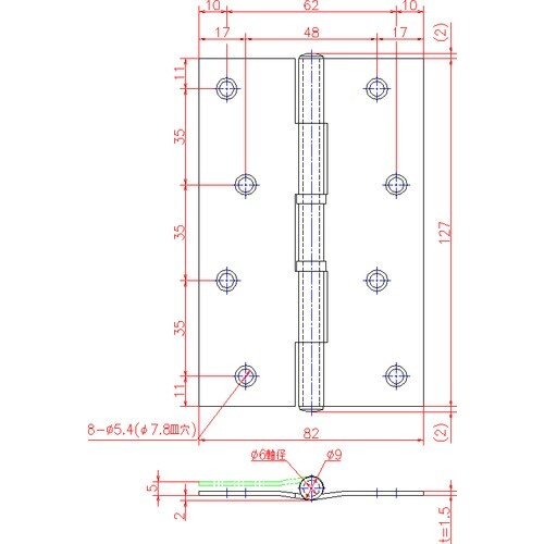 ジョー・プリンス ステンレス中厚蝶番 127mm