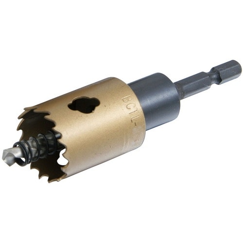 標準タイプのバイメタルカッターの安全ストッパー(ツバ)を無くし、ふところを深くしたモデル。貫通作業に最適です。鉄板(3.2mm以下)、木工、塩ビ、プラスチック等の穴あけ作業。 |