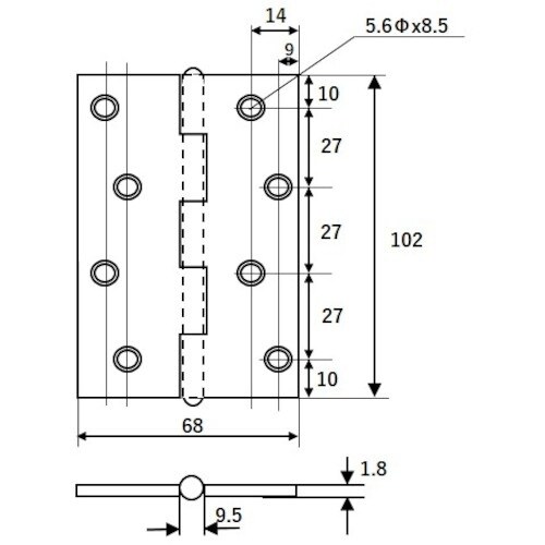 普通丁番です。家具や扉の丁番としてサイズに合わせてお使いください。
