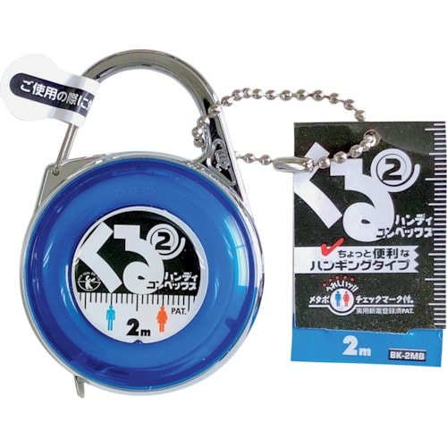 最長2Mまで測れるコンパクト仕様のコンベックスです。メタボリックシンドロームのチェックが出来るマークを目盛り上に付けた遊び心あふれる仕様です。洋服を買う際の計測メジャーとしても使えます。