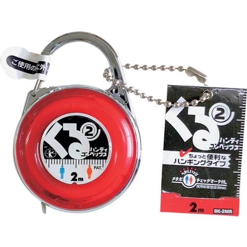 最長2Mまで測れるコンパクト仕様のコンベックスです。メタボリックシンドロームのチェックが出来るマークを目盛り上に付けた遊び心あふれる仕様です。洋服を買う際の計測メジャーとしても使えます。