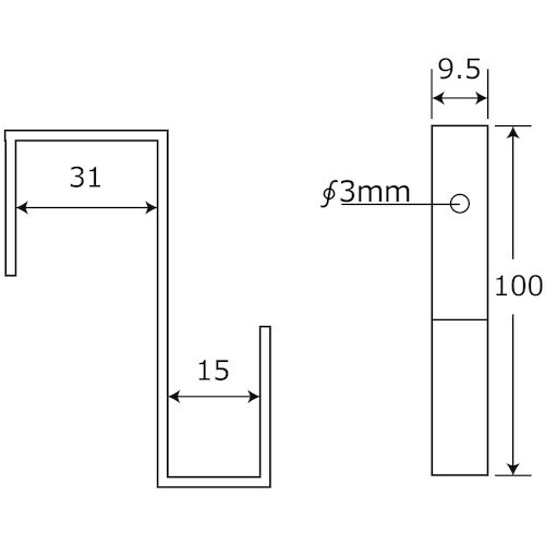 安全荷重(kg):3.6 | 規格:15X31X100mm | 材質・仕上げ:スチールクロムメッキ | 単位:1個