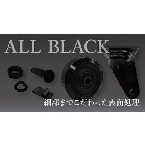車輪ホイールや金具ブラケットは勿論、シャフトやナット等の部品に至るまで全てブラック仕上げです。 光の反射を抑えることで目立たさせずに足元をスマートに演出します。中荷重用。