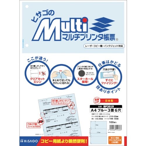 HISAGO マルチプリンタ帳票 A4 ブルー 3面 6穴