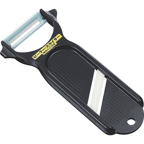 耐熱70℃・セラミック刃で、サビずに切れ味を持続します。両刃のセラミックスライサーでネギ・キュウリなど、 細長いものが素早く切れます。一つで二役のキッチンツール。 |