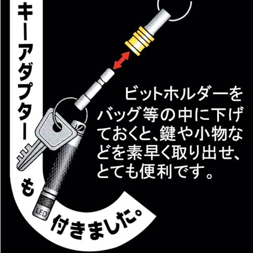 | 注意事項 | ※ビット等はホルダーに確実に取付け、抜け落ちない事を確認してからお使いください。ドリルビットや下穴錐ビット等、先端の鋭利なものは危険ですので使用しないでください。ホルダー1個につき500g以上のものを取り付けないでください。各パーツに割れ等の症状がないことを確認の上ご使用ください。 |