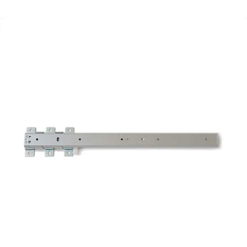 引き出しの底にレールを取り付ける底引きタイプです。引き出しても筐体側にスライドレールが見えません。レバー操作でアウターメンバーを取り外せます。本体の厚みは、わずか19.5mmと薄型です。 |