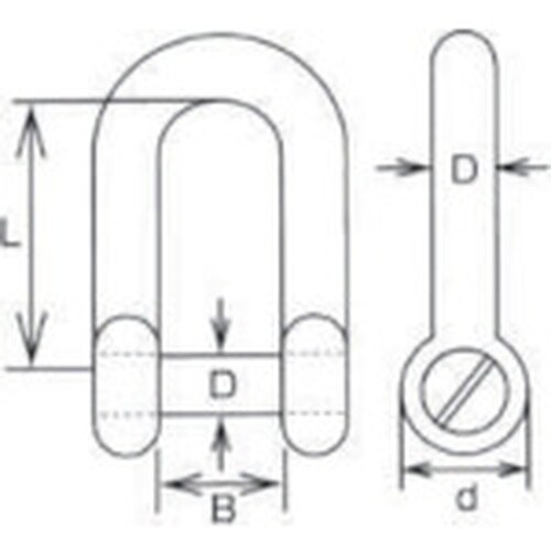 L寸法が従来のシャックルより長いので、用途が広がります。シャックルのピンの出っ張り(摘む部分)を除いているので、邪魔にならないです。