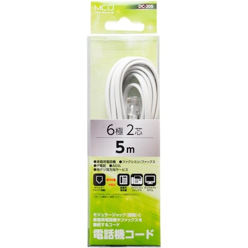 ナカバヤシ MCO 電話機コード 6極2芯 5m 白 A00Y-5756