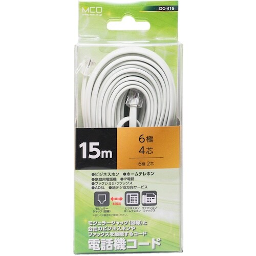 ナカバヤシ MCO 電話機コード 6極4芯 15m 白 A00Y-5771