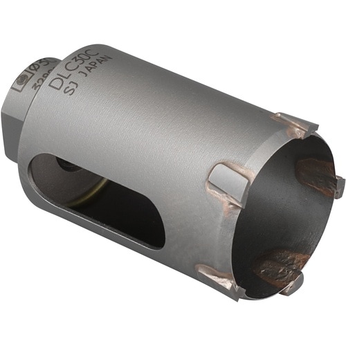 インパクトドリルで木材も焼けずにスムーズに穴あけができます。食いつきの良い独自の2段刃を採用しています。被削材:木材、合板、樹脂系材料、塩ビパイプ、人造大理石、アクセスフロア。 |