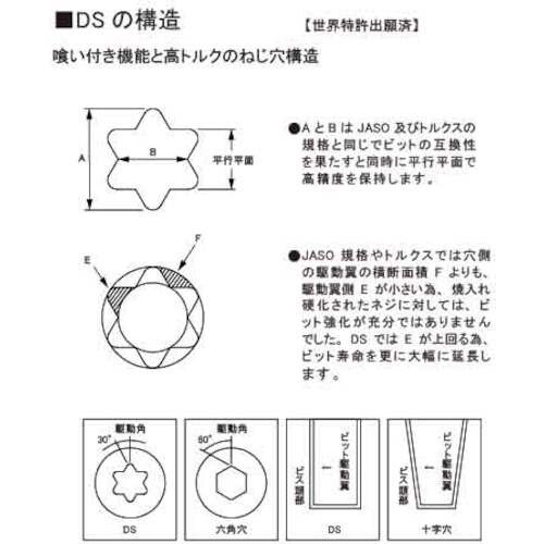 高いトルク伝達機能と食いつき性能を兼ね備えたDSリセスのナベ頭形状ドリルねじです。 |