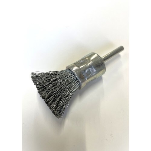 | 注意事項 | ※軸はブラシの根元まで差し込み、しっかりとチャッキングできたことを必ず確認して下さい。軍手等にフィラメント(線材)がからみ、手首ごと機械工具に巻き込まれる危険がありますので、軍手等を用いての使用はおやめください。研磨対象部品を手に持って作業すると、作業対象物がブラシの回転力に負けて飛散し、大きな事故につながります。研磨対象部品は必ず固定器具に装着のうえ、作業を行ってください。 |