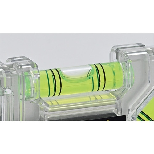 大型窓で見やすい水平気泡管大型シャックルでスピーディーに収納と取り出しができます。カラビナ対応シャックルを内蔵しています。落下防止コード対応シャックルを内蔵しています。足場組立用に。 |