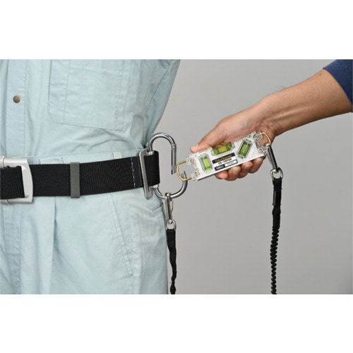 大型窓で見やすい水平気泡管大型シャックルでスピーディーに収納と取り出しができます。カラビナ対応シャックルを内蔵しています。落下防止コード対応シャックルを内蔵しています。足場組立用に。