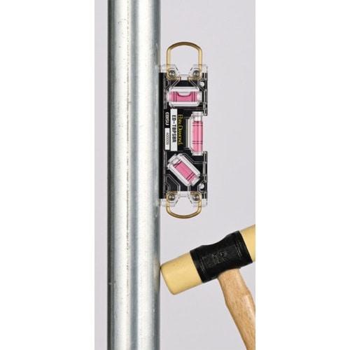 大型窓で見やすい水平気泡管。大型シャックルでスピーディーに収納と取り出しができます。カラビナ対応シャックルを内蔵しています。落下防止コード対応シャックルを内蔵しています。足場組立用に。 |