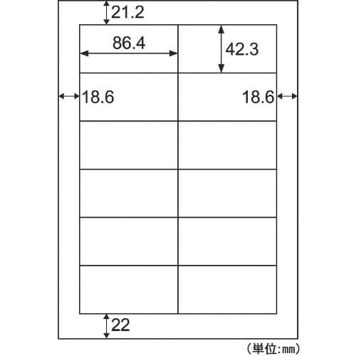 面付:12 | ラベルサイズ(mm)縦:42.3 | ラベルサイズ(mm)横:86.4 | 秤量(g・m2):179 | 用紙サイズ(mm):A4(2…