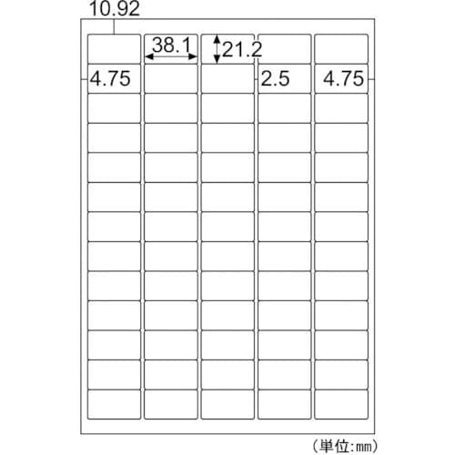 面付:65 | ラベルサイズ(mm)縦:21.2 | ラベルサイズ(mm)横:38.1 | 秤量(g・m2):179 | 用紙サイズ(mm):A4(2…