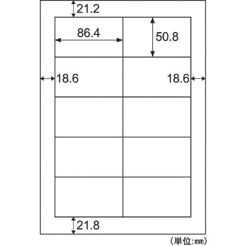 面付:10 | ラベルサイズ(mm)縦:50.8 | ラベルサイズ(mm)横:86.4 | 紙厚さ(mm):0.15 | ラベルのみの厚さ(mm):0…