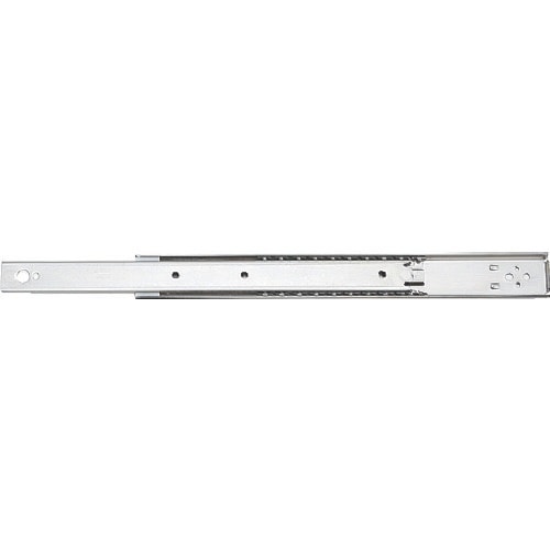 3/4スライドの2段引スライドレールです。レールを全開にすると、摩擦抵抗によりブレーキがかかり止まります。さらに強く引くとレールを取り外せます。 |